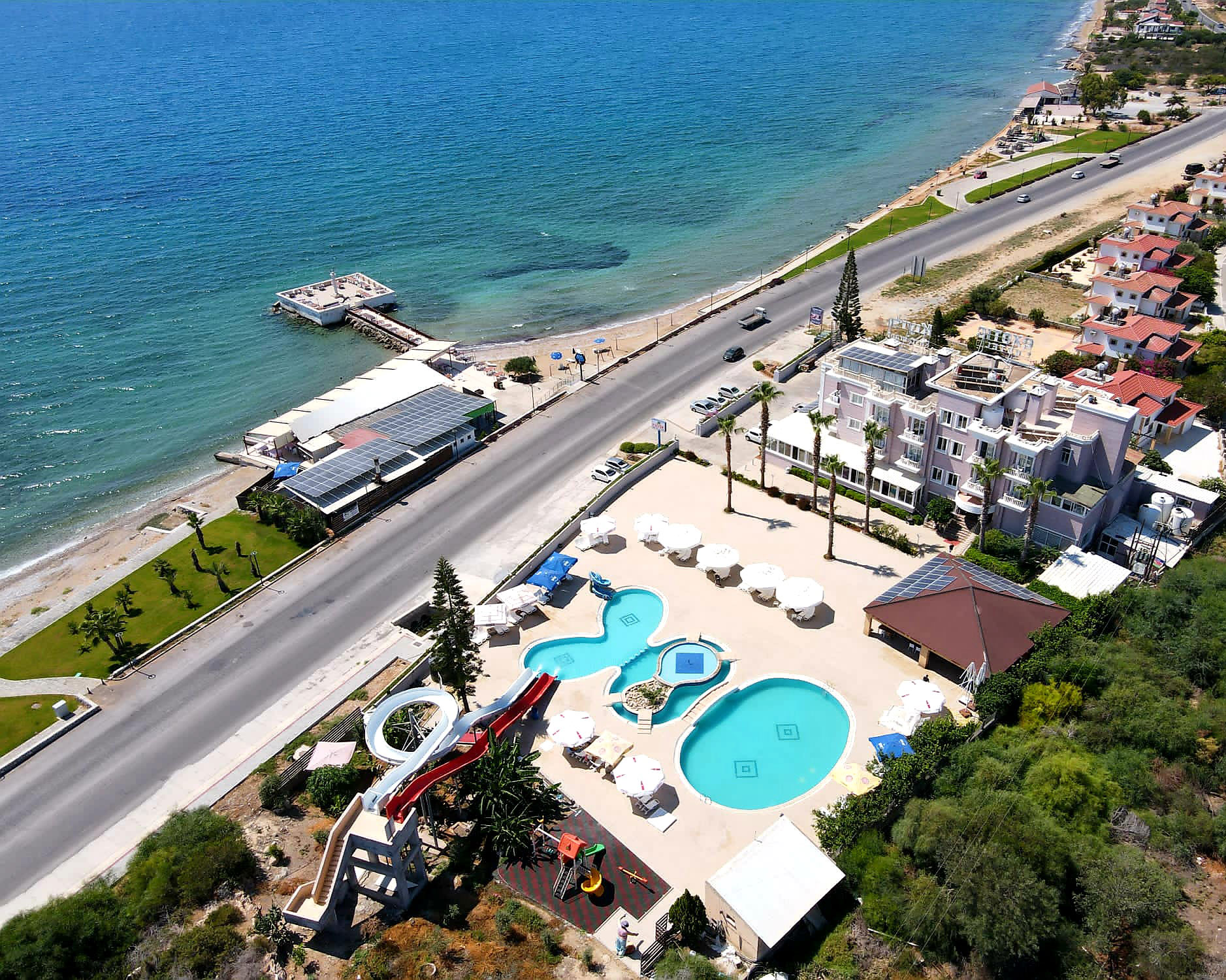 The family run hotel, Exotic Hotel & Spa is situated on the beachfront in a small fishing village outside Bogaz, Famagusta. The hotel has been there since 1999, providing affordable accommodation with great charm and good facilities. They have a large swimming pool and a children’s pool, there are three water slides, two large ones and a smaller one for the children.